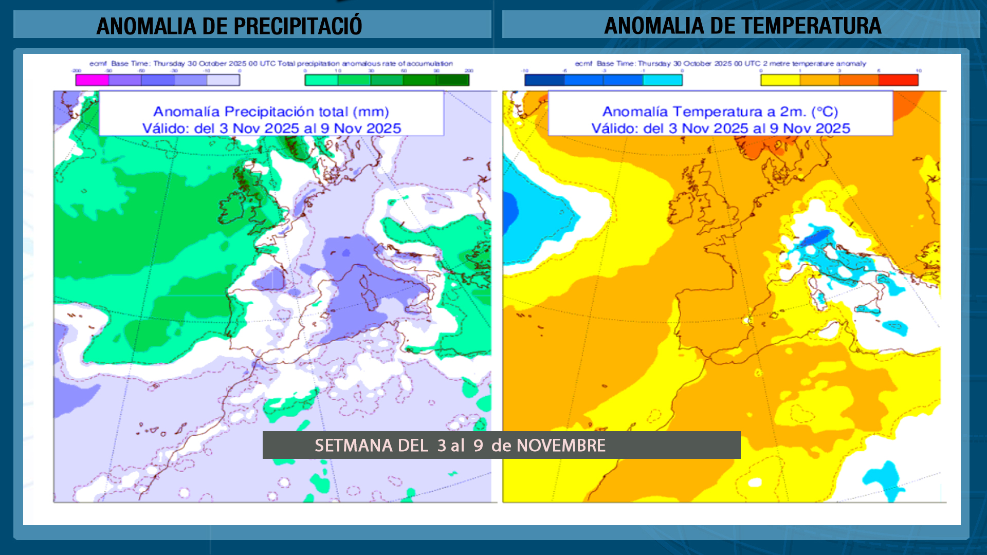 La primera setmana de novembre manté el patró de les últimes jornades: estabilitat, absència de pluges i valors tèrmics per damunt de la mitjana. Els fronts atlàntics continuen sense poder trencar el “mur” anticiclònic europeu, de manera que la tardor meteorològica haurà d’esperar. ☀️
