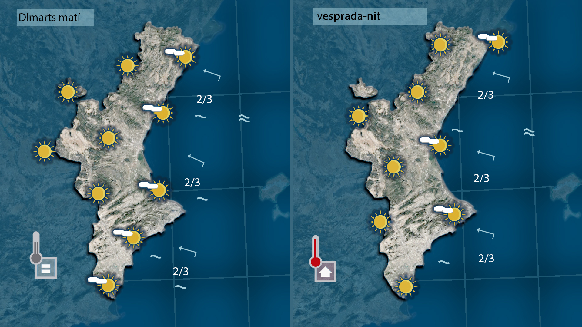 Dijous i divendres, l’arribada d’un front feble des de l’Atlàntic podria trencar parcialment la monotonia, deixant algunes pluges dèbils a la costa i al sud. Dissabte, el vent tornarà a girar a ponent i el sol s’imposarà de nou amb temperatures més altes.