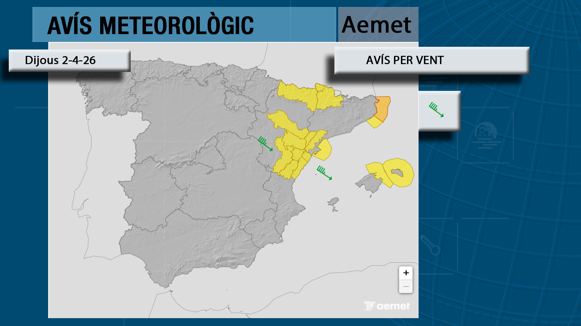 Al nord el mestral encara bufarà amb certa força durant el dia, amb avisos actius fins a la nit. Tot i això, el cel es mantindrà pràcticament ras i les temperatures seran agradables al migdia. Demà el vent encara es notarà a primera hora, però acabarà encalmant completament.