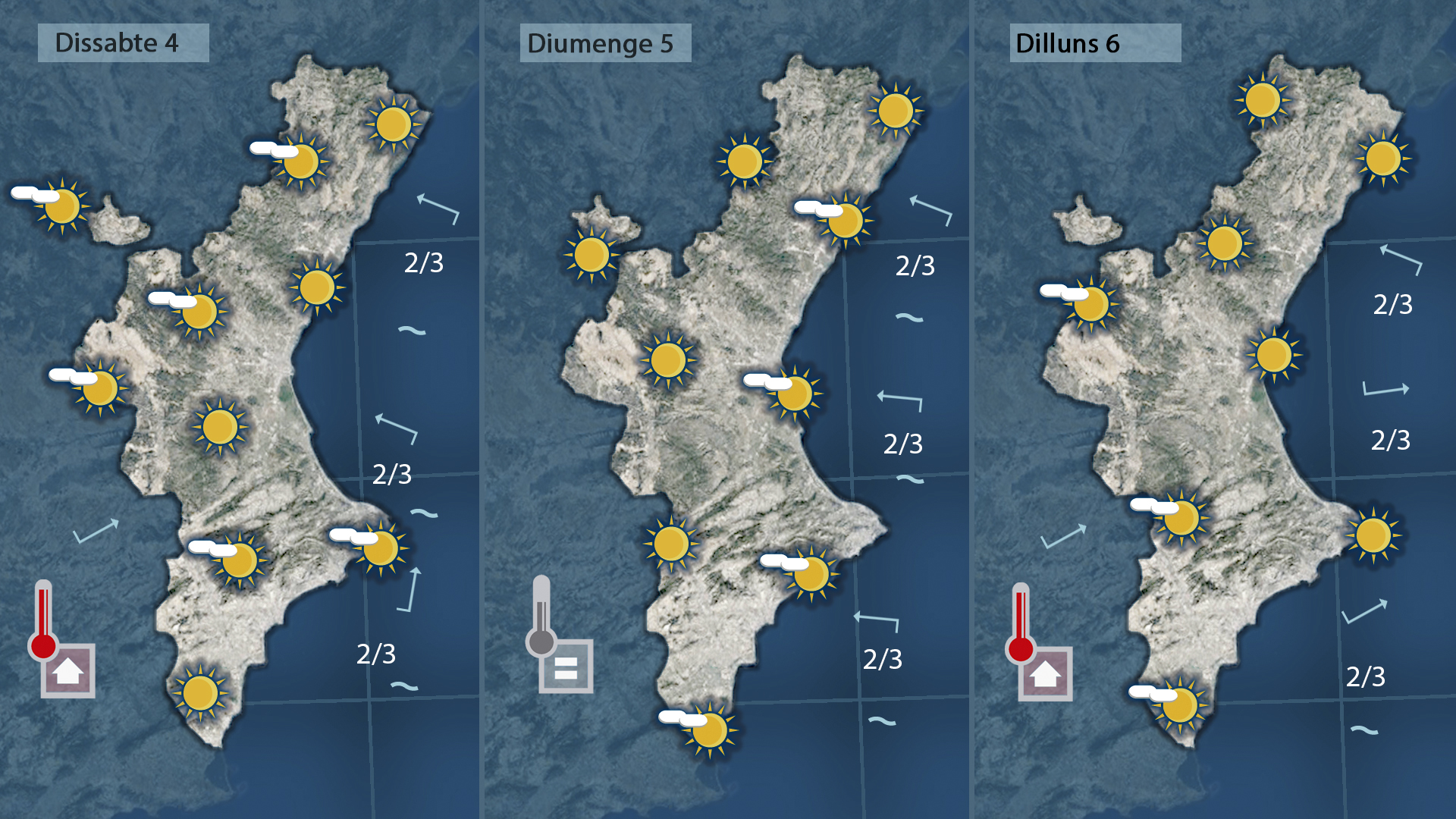 El País Valencià enceta uns dies marcats per l’estabilitat després de setmanes amb vent i variabilitat. Encara caldrà esperar unes hores perquè el vent deixe de ser protagonista, especialment al nord, on hui es manté l’avís groc fins a la mitjanit. Però la millora és ja un fet i es consolidarà de cara als pròxims dies.