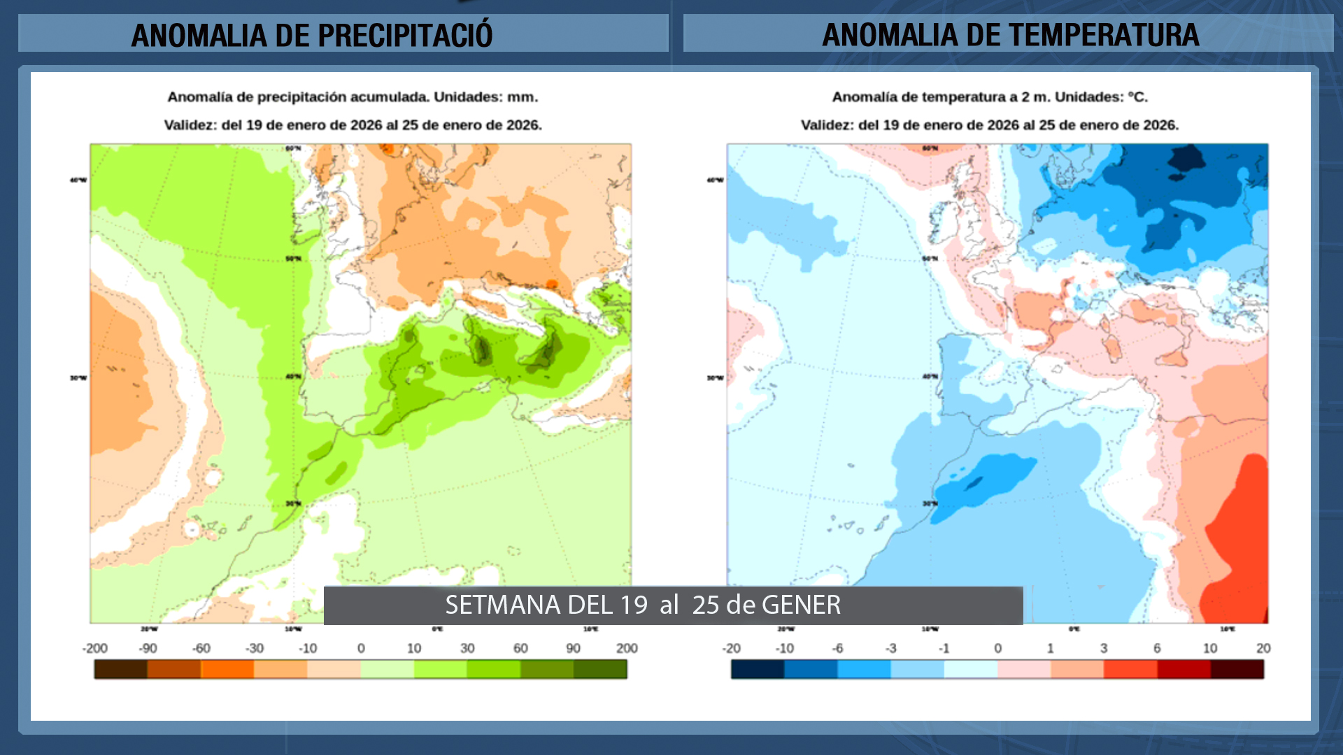 La setmana arranca amb molta activitat meteorològica i amb tots els ingredients propis de l’hivern. La previsió setmanal d’Aemet és clara: pluja abundant i temperatura baixa, especialment a l’est de la Península i, de manera destacada, al País Valencià. El predomini del color verd als mapes de precipitació i del blau als de temperatura confirma que ens espera una setmana freda i plujosa, amb neu a la muntanya i episodis que caldrà seguir amb atenció.