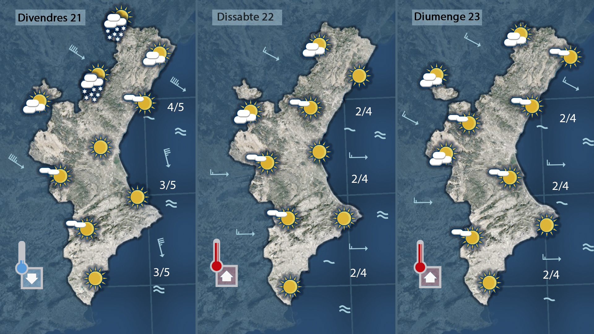 Conclusió: El País Valencià viu el primer embat seriós de l’hivern, amb fred intens i vent fort de mestral. Dijous i divendres seran les jornades més gèlides, abans d’una lleugera recuperació de temperatures durant el cap de setmana.