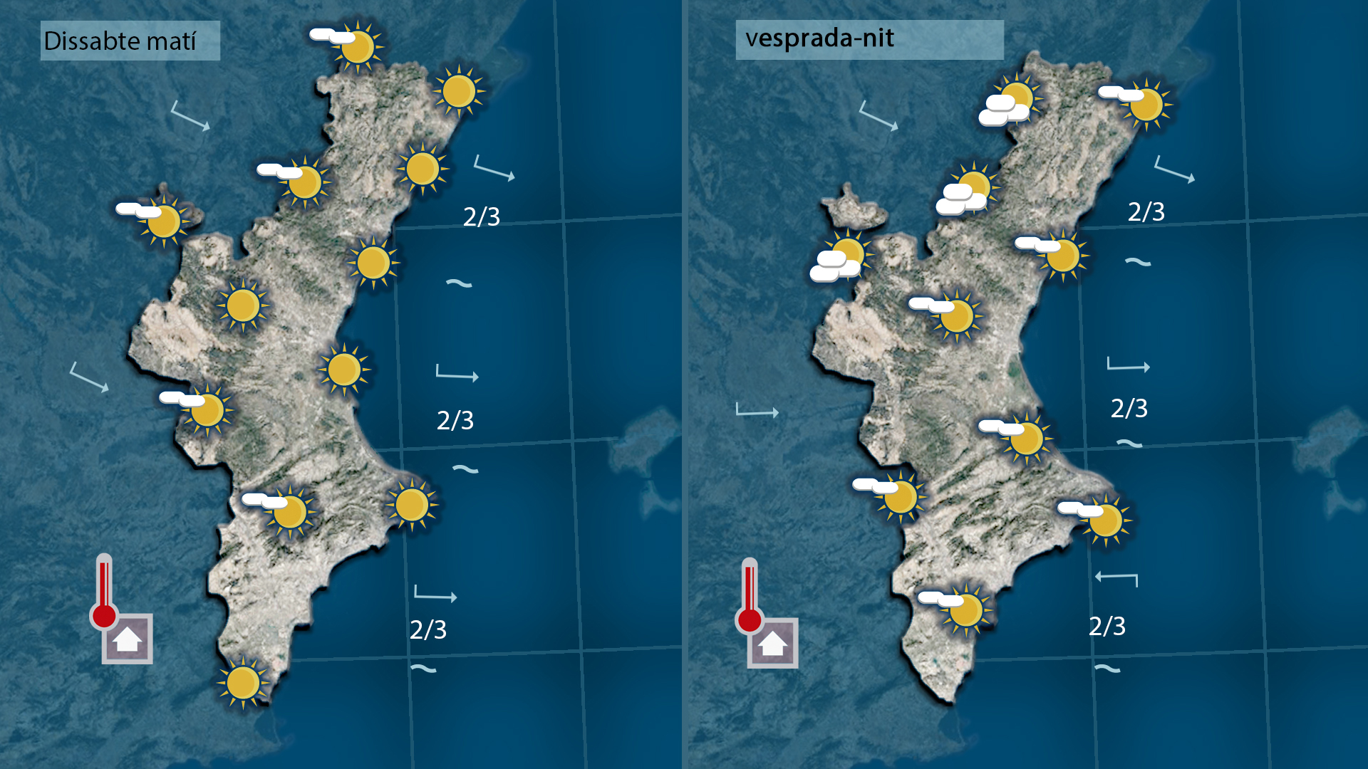 Oratge radiant tant hui com demà, amb ambient clarament calorós. Les màximes s’enfilaran fins als 30-31 graus en punts de l’Horta i la Ribera, amb una sensació estiuenca marcada. Diumenge, l’entrada de vents de llevant farà augmentar la nuvolositat i no es descarta algun ruixat feble a partir de la vesprada.