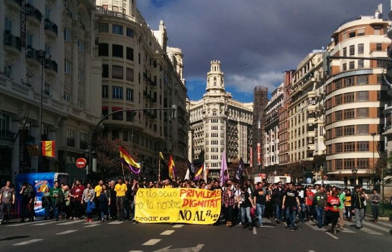 La marxa, que ha arrancat a les 12.00 hores des de la Facultat d’Història de la Universitat de València, ha conjuminat dues convocatòries, una liderada per la coordinadora Estudiantil de València -que integren el Bloc d’Estudiants Agermanats (BEA), Acontracorrent i el Sindicat d’Estudiants de Països Catalans (SEPC)- i una altra pel Sindicat d’Estudiants.