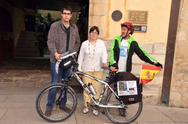 El primer edil morellà ha rebut el ciclista a l’ajuntament i li ha mostrat el suport de la localitat amb aquesta causa.
