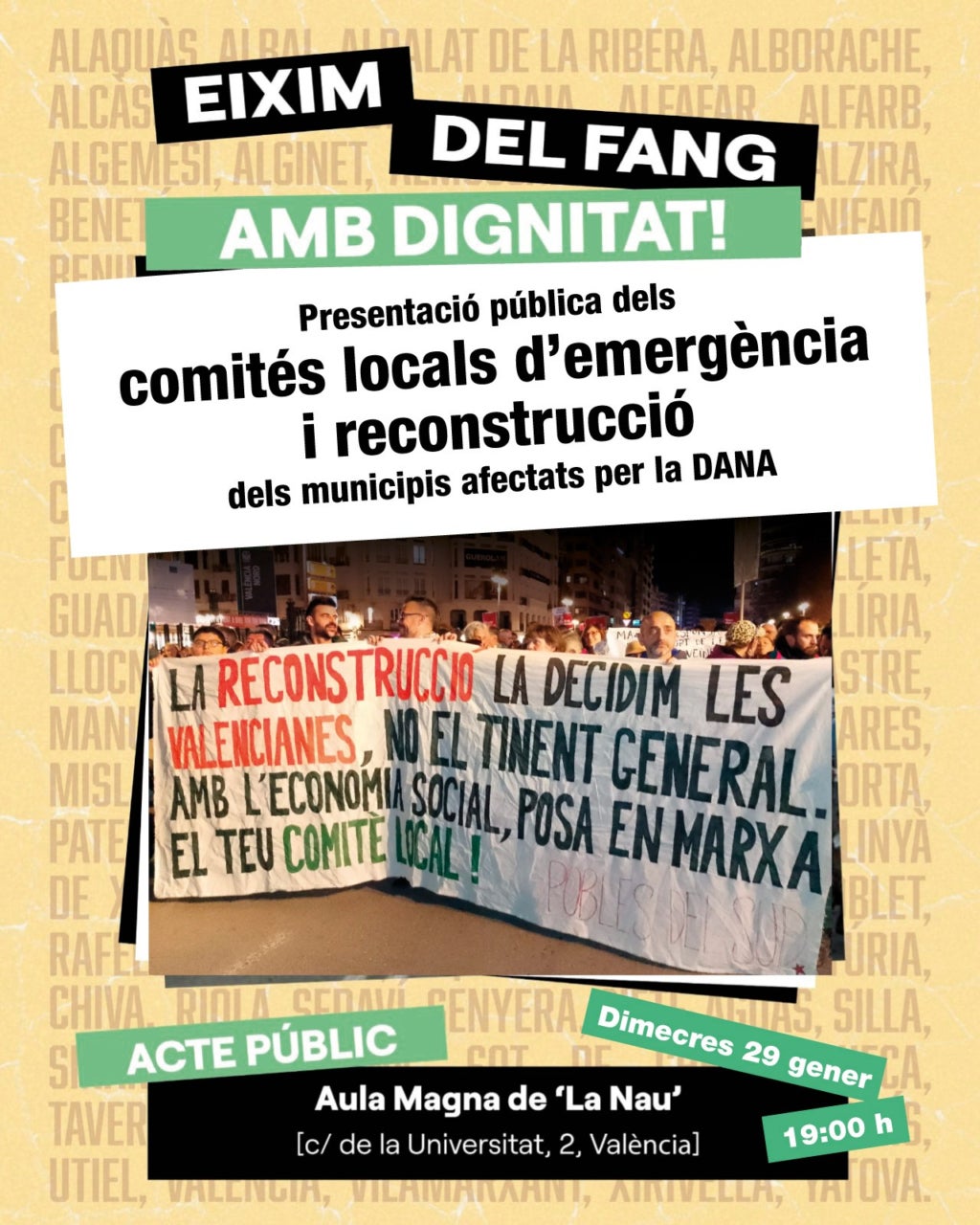 Per açò, des dels Comités reclamen que «no es pot reconstruir sense parlar amb la gent», i des del Comité de València han posat com a exemple la inversió de l’Ajuntament per reconstruir un polígon industrial que el veïnat de Forn d’Alcedo reclama que es requalifique per abordar la falta d’habitatges.
