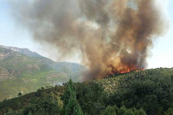 L’incendi forestal afecta una zona d’arbrat i de difícil accés, i en les tasques d’extinció treballen també set brigades, sis autobombes i tres vehicles de bombers.