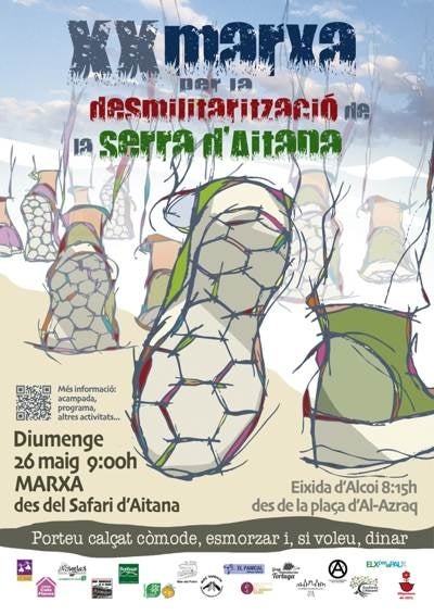 Aquest diumenge 26 de maig diverses entitats han convocat la que serà la XX Marxa per la Desmilitarització de la Serra d’Aitana. Segons indiquen els convocants, aquesta marxa es justifica «tant per ser la Marxa que fa vint, com per la dramàtica situació actual», diuen en referència explícita a la situació a Palestina, a Ucraïna i al «foment del militarisme i de la despesa militar».