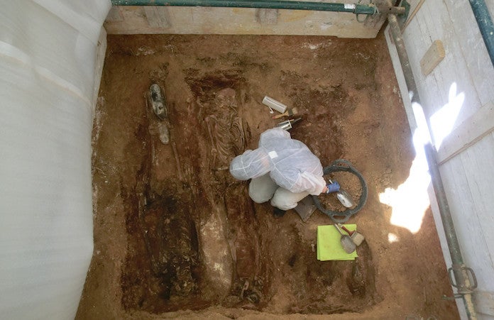 Els esquelets de les víctimes enterrades amb taüt estaven pitjor conservats que els que estaven dipositats directament en terra. La fusta s’havia podrit i havia esclafat part de les estructures òssies. Els que estaven en la terra directa, en desaparéixer la carn, en compactar l’argila, la terra havia actuat com un suau cotó-en-pèl protector en reomplir espais.