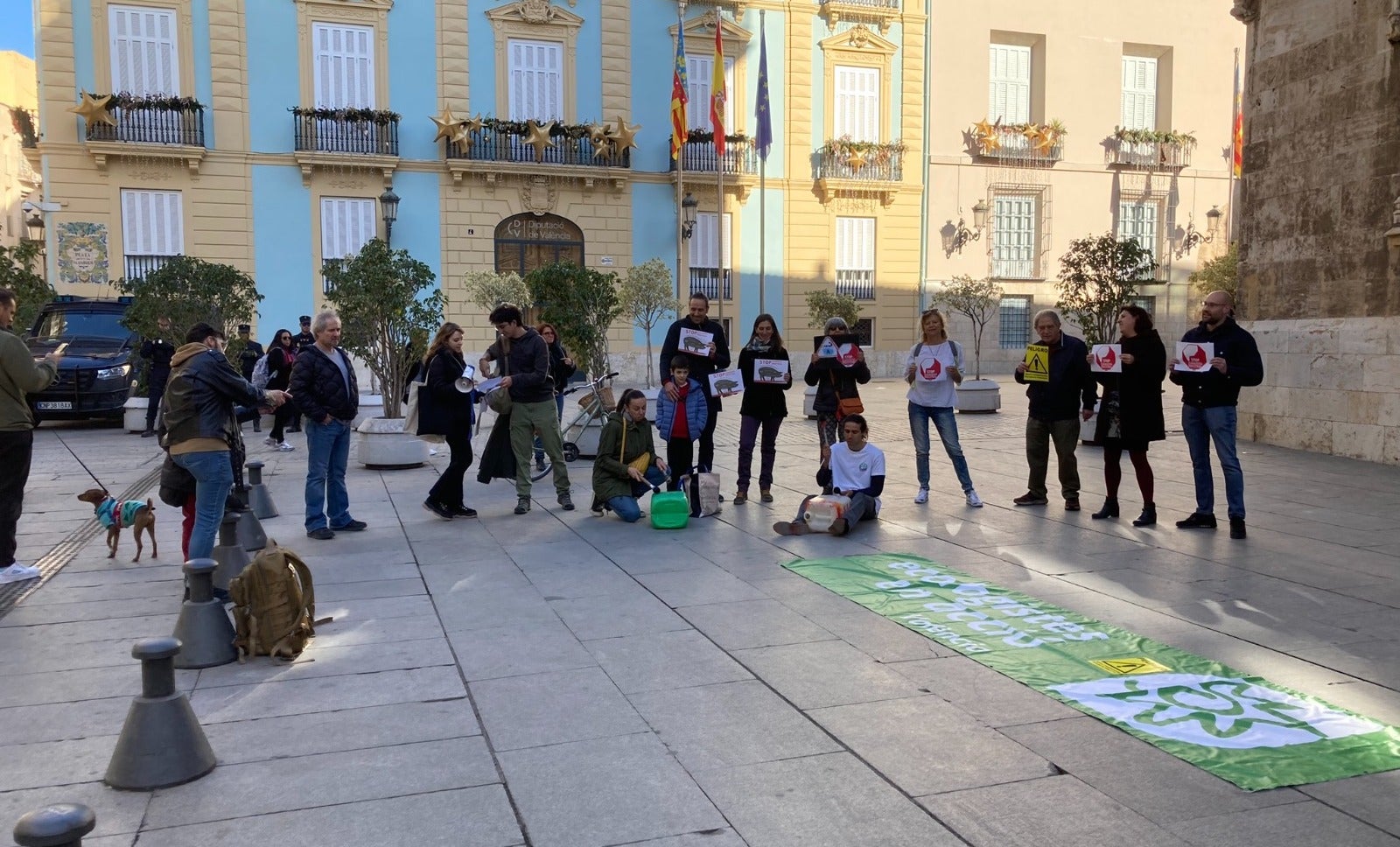 Així ho han expressat els activistes mitjançant la lectura del manifest, que va tindre lloc a la plaça de Manises, enfront del Palau de la Generalitat Valenciana. En primer lloc, van remarcar «el sorgiment i la potenciació d’activitats extractives en el territori, com la ramaderia i l’agricultura industrial, entre les principals causes de forçament dels recursos hídrics». En tots dos casos, «les empreses exerceixen una gran sobreexplotació dels aqüífers, fent ús de la pràctica totalitat de l’aigua i restringint la seua disponibilitat per a altres usos». En aquest sentit, cal destacar el fet que l’estat espanyol «s’haja convertit en el primer país productor i exportador de porcí d’Europa a costa de limitar l’accés i consum d’aigua a la ciutadania». En concret, «a les poblacions que viuen prop de les instal·lacions productives i que, desgraciadament, hui en dia estan sent proveïdes amb cubes davant l’escassetat d’aigua».