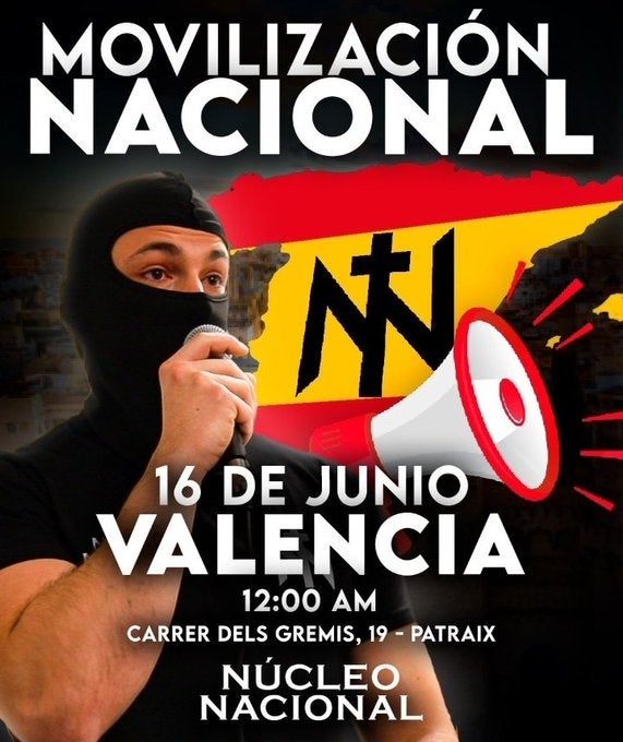 Alguns dels retinguts portaven samarretes on era ben visible el logotip de Núcleo Nacional, un grupuscle nazi de Madrid que, precisament, aquest mateix diumenge al migdia havia convocat un acte per tal d’implantar-se a València en el pati d’una empresa d’un polígon industrial de Patraix.