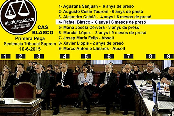 La sentència de l’Alt tribunal condemna l’intermediari de les operacions, Augusto César Tauroni a 6 anys de presó i imposa la mateixa pena per a l’exsecretària general de la Conselleria, Agustina Sanjuan. L’exsotssecretari de la Conselleria Alejandro Català resulta condemnat a 4 anys i 6 mesos. El Suprem condemna Marcial López a 3 anys i 9 mesos, a Javier Llopis a 2 anys i a Maria Josefa Cervera a 3 anys de presó i absol Marco Antonio Linares i Josep Maria Felip.