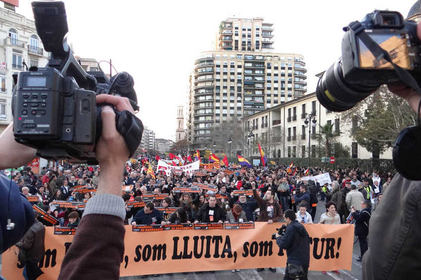 Unes 2.000 persones s’han manifestat aquest divendres als carrers de València sota el lema ʹSom poble, som lluita, som futur’ en la manifestació per l’aniversari de les protestes de l’anomenada Primavera Valenciana.