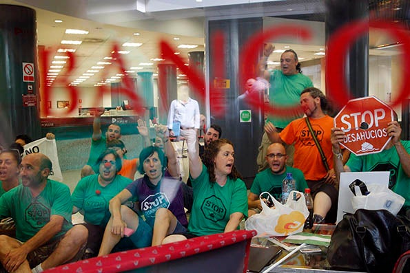 Aquest tancament forma part d’una mobilització a nivell estatal de la PAH enfront de les seus del Banc Popular per a denunciar el desnonament d’un ciutadà barceloní.