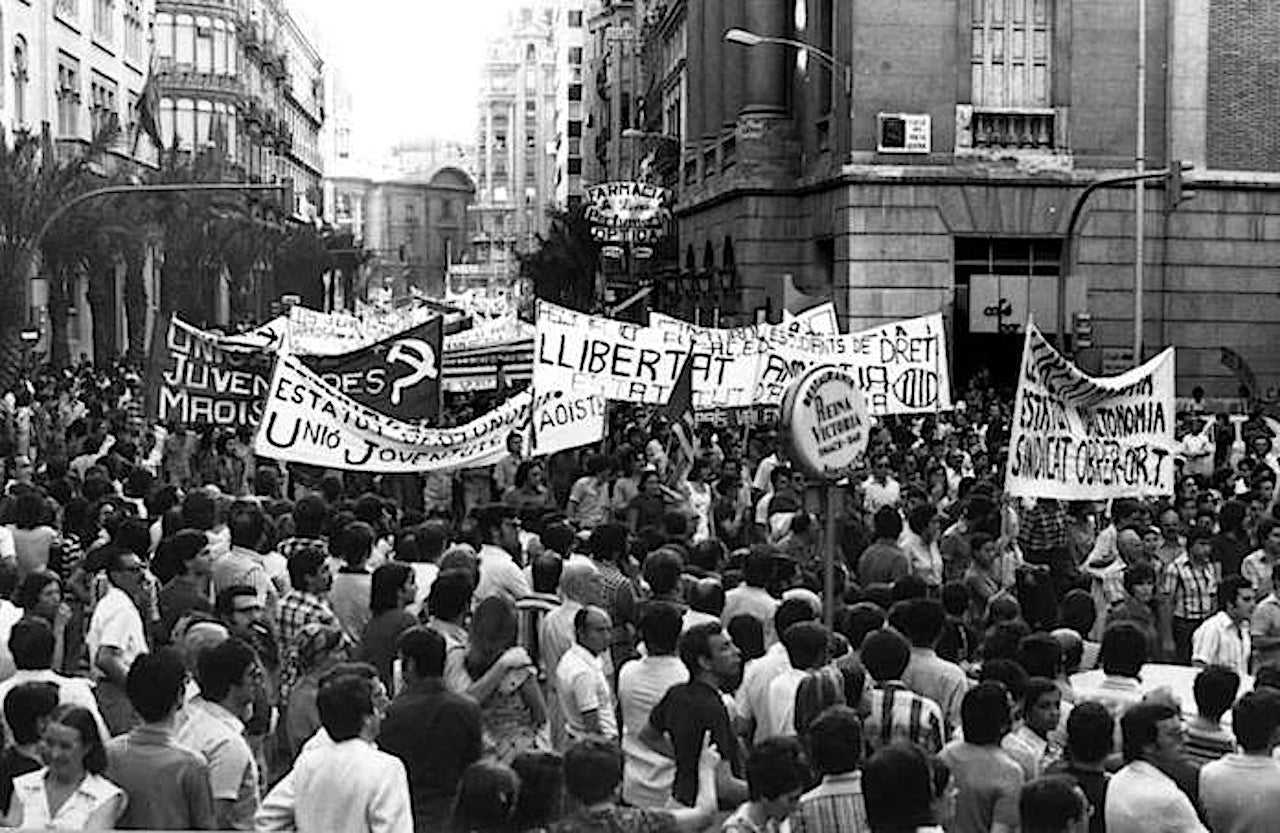 A València, es van dur a terme diferents concentracions, mítings i col·loquis per recuperar les llibertats bàsiques i la restauració de l’Estatut del 32. La mobilització, malgrat la forta repressió policíaca, va comptar amb una gran suport popular.