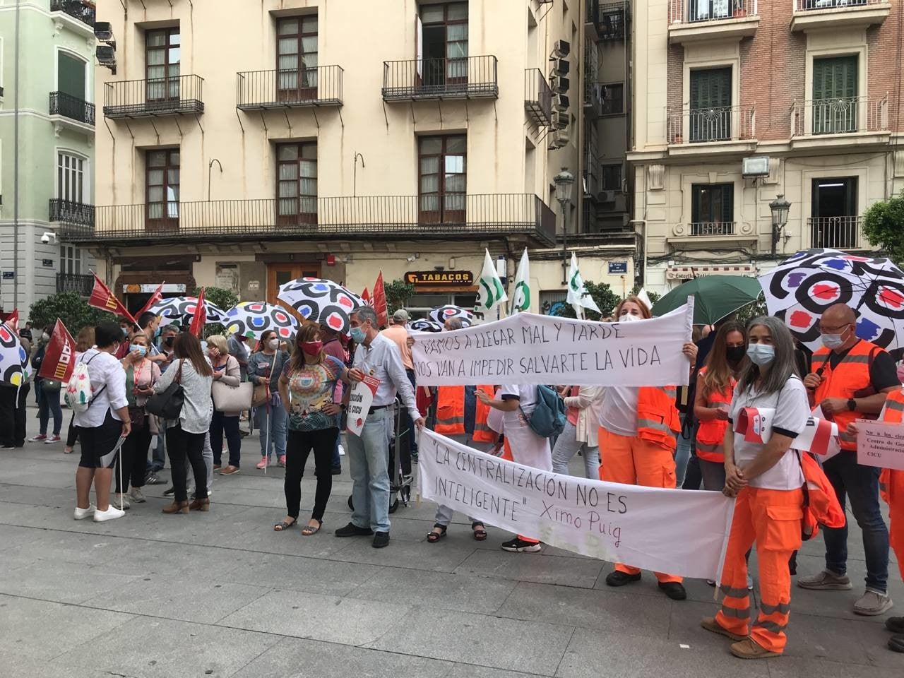 Treballadors del Servei d’Emergències Sanitàries (SES) d’Alacant s’han concentrat aquest divendres davant del Palau de la Generalitat per protestar contra la centralització del Servei d’Emergències Sanitàries.
