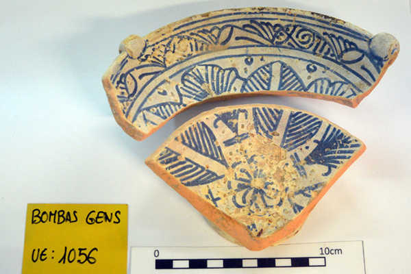 Per altra banda, també han eixit a la llum diferents peces emprades en la vida diària de l’alqueria, com poden ser fragments de les vaixelles. “Ens ha arribat, per exemple, un plat de pisa blau decorat amb motius de palmetes datat entre els segles XIV i XV i que formaria part d’una de las primeres vaixelles gastades. A més, ens trobàrem diverses peces fragmentades de plats daurats de Manises d’una època posterior, en concret del segle XVII, que foren rebutjats després de ser usats”, explica Berrocal.