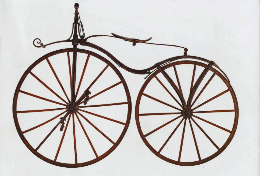 El trajecte s’inicia amb la Laufmaschine (màquina de córrer), inventada per l’alemany Karl von Drais el 1817, i que més tard passaria a ser coneguda com la draisina en el seu honor. El quadre i les rodes eren de fusta, no tenia pedals ni sistema de transmissió ni frens; es movia impulsant-se amb els peus a terra.