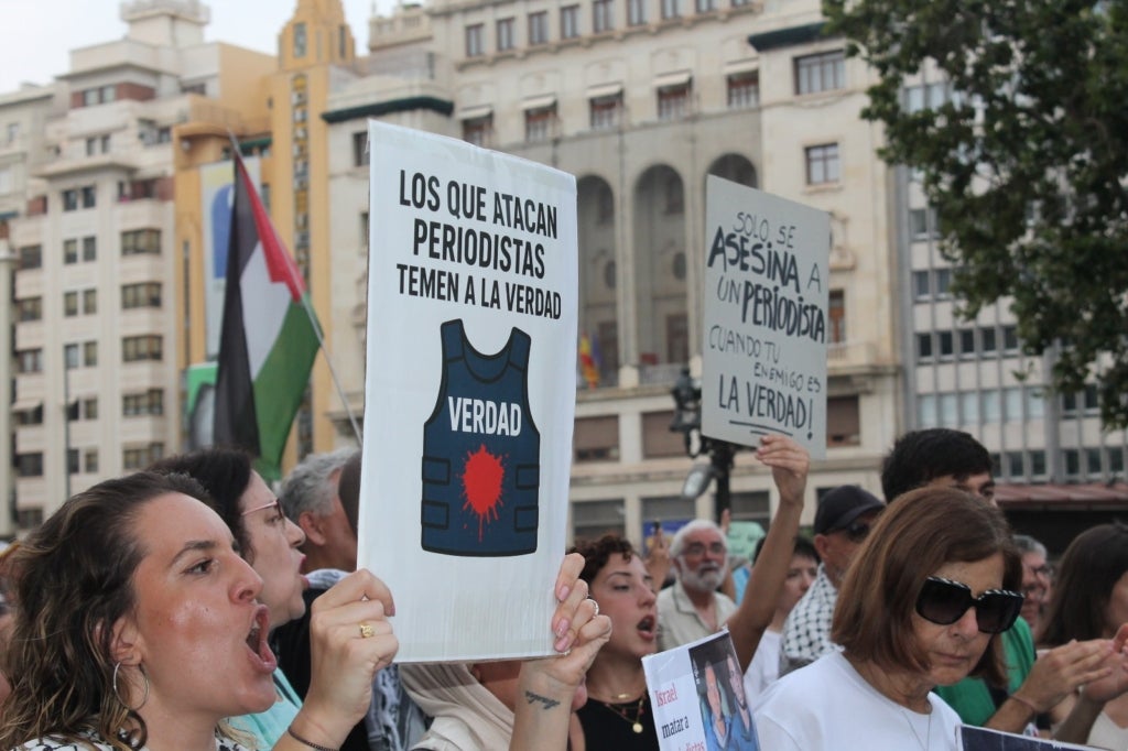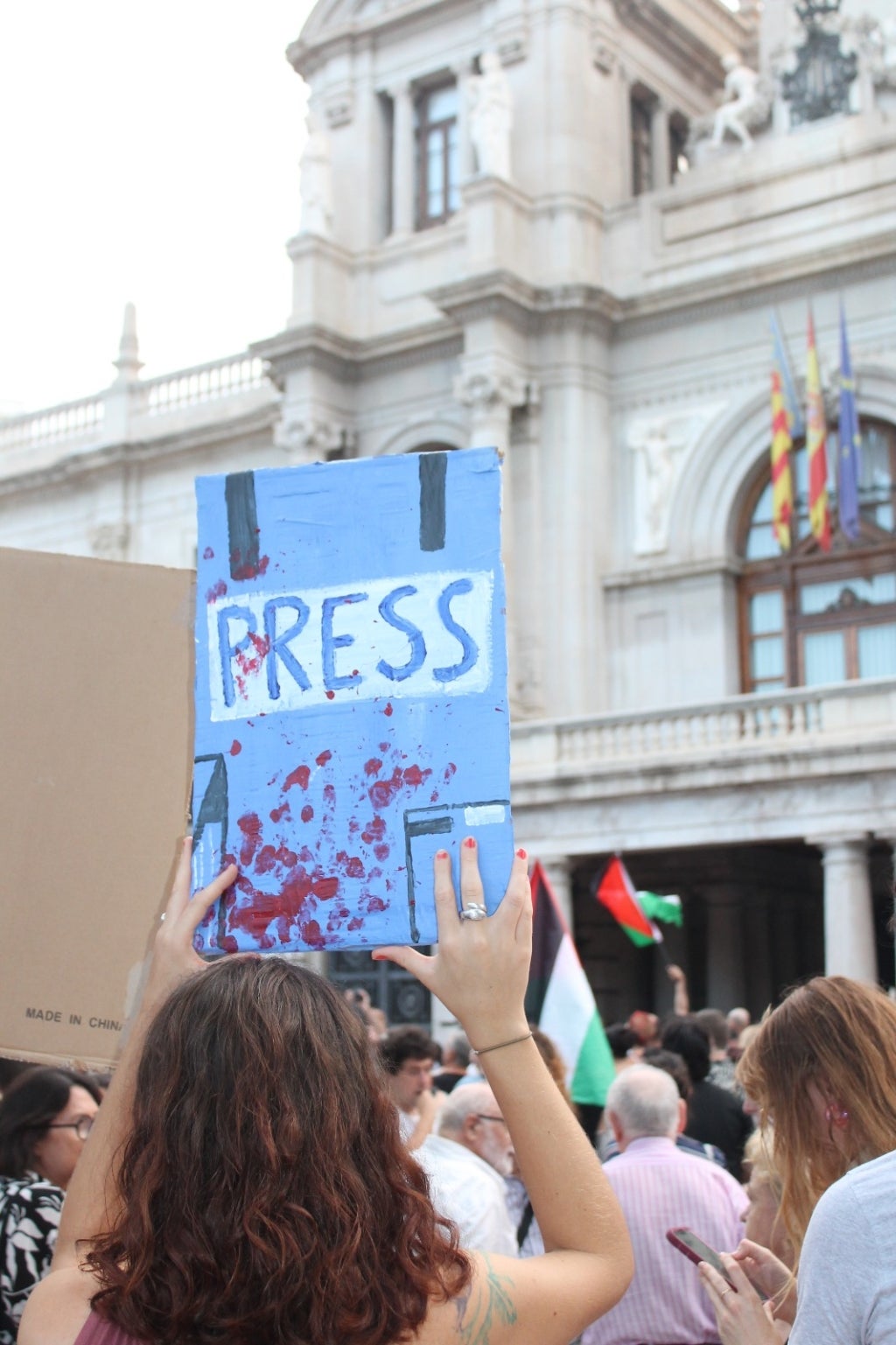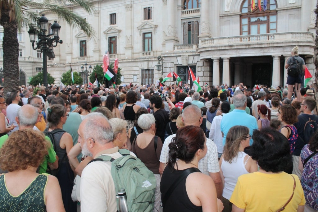 València clama contra el genocidi a Gaza i ret homenatge al periodista assassinat Anas al-Sharif. Centenars de persones es van concentrar ahir a la vesprada a la plaça de l’Ajuntament de València per exigir la fi del genocidi a Gaza i condemnar l’assassinat del periodista d’Al Jazeera Anas al-Sharif. La convocatòria, organitzada per Veus X Palestina i una desena d’entitats solidàries amb el poble palestí, es va fer amb només 24 hores d’antelació i va aconseguir una notable participació malgrat el període estival.