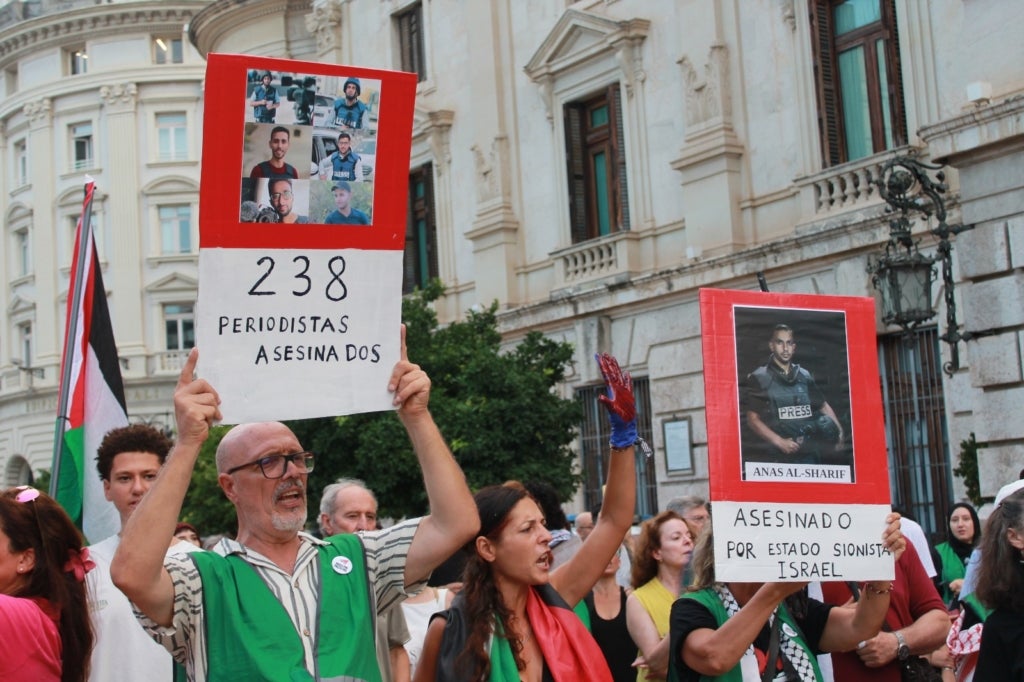 Durant la mobilització, es va retre homenatge a Anas al-Sharif, mort diumenge passat en un bombardeig israelià prop de l’hospital Al Shifa juntament amb altres cinc companys. Des de l’octubre de 2023, més de 237 periodistes han estat assassinats a Gaza, en una ofensiva que ha provocat la mort de desenes de milers de civils i que diverses organitzacions de drets humans qualifiquen com a genocidi.