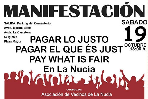 S’han mostrat convençuts que una “resposta massiva” farà que el govern local “entre en raó” i comprenga “que els ciutadans de La Nucia estem maltractats”. La manifestació, que segons l’associació ha superat “les traves” de l’ajuntament i la subdelegació del govern, partirà el dissabte a les 18 hores des de l’aparcament del cementeri.