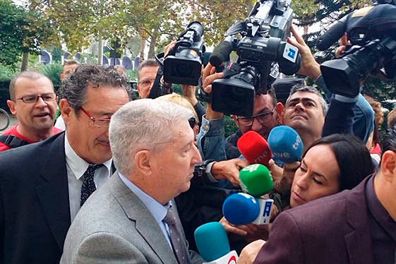 A la seua arribada l’esperaven desenes d’extreballadors de l’extinta cadena pública que l’han rebut amb el crit de “a presó”. A l’entrada, en ser preguntat pels periodistes per si havia mantingut relacions sexuals amb les denunciants, ha respost primer que no. Seguidament, en ser interpel·lat per si va mantenir relacions consentides, ha dit: “Sí, sí” i ha assenyalat que ho explicarà a l’eixida de la vista.