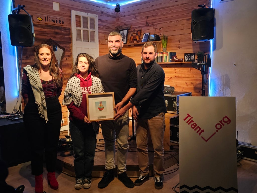 La Nit del Tirant ha tornat a omplir València de compromís, memòria i política des del valencianisme. En la 29a edició, l’ACV Tirant lo Blanc ha premiat el grup musical La Fúmiga i el moviment de Boicot, Desinversions i Sancions (BDS) País Valencià per la seua trajectòria i pel paper clau en la solidaritat amb Palestina i en la defensa d’un País Valencià més just, culte i crític amb el poder. Va ser a un Espai Llimera de València íntim, però que es va quedar menut per l’assistència i va omplir la sala d’actes.