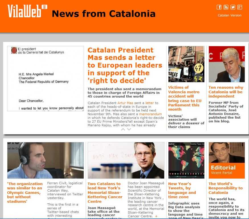 El portal, VilaWeb News from Catalonia, funciona des del 2 de gener. Aquesta versió del diari en anglès no serà una còpia de l’edició catalana sinó que tindrà continguts propis.