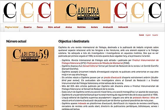 ‘Caplletra. Revista Internacional de Filologia’ estrena pàgina web