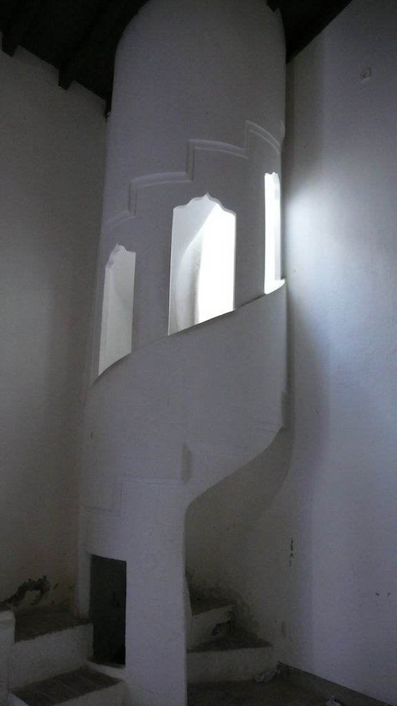 És de planta rectangular i està orientada cap al sud. Quatre pilars divideixen l’interior en tres naus. A l’esquerra de la porta hi ha una escala de caragol amb antiga funció de minaret. La Quibla és l’element més rellevant del temple, ja que ha d’assenyalar la direcció de la Meca i, per tant, el lloc on els creients han de dirigir les oracions. Hui dia podem veure també els arcs del mihrab al mur de la Quibla. A l’exterior de la mesquita, hi ha l’antic pou de les ablucions.