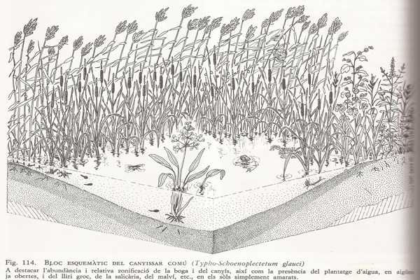 Perquè les relacions ecològiques també estan presents en el quadre i van més enllà de les de les caràcter tròfic, ja que n’hi ha en el subsòl i en l’aigua, i mitjançades per agents químics i per canvis físics en el medi. I en totes aquestes tenen un paper important les boves, les Typha.