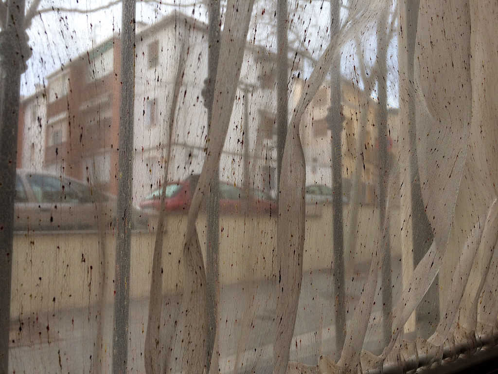 La claror del dia travessa el vidre fred i s’esmuny tènuement pel cortinatge de la finestra de casa. La persiana pujada fins al capdamunt. A l’ampit, la fixació dels barrots perpendiculars conviu amb la pols i els excrements dels anàrquics pardalets. I darrere d’aquestes barreres quotidianes, a la foscor, l’avorriment combatut a través de dos ulls àvids d’actualitzar xafarderies i copsar-ne de noves. Si hom para l’orella pot escoltar amb nitidesa com a través dels plecs de la tela s’esgolen conversacions heterogènies, futileses diàries que segons què i segons quan, adquireixen un alt valor morbós i revifen el foc de la nostra atàvica indiscreció. Entre paraules d’oratge, frases adients per als bons sociolingüistes, plors de xiquets malcriats i la despreocupació d’adolescents que mengen pipes mentre repuntegen el mòbil, desfilen els cardats recents de perruqueria, els vestits extemporanis, els abrics coents o les esquifides bosses del mercat, sent objecte cruel de les nostres llengües viperines.