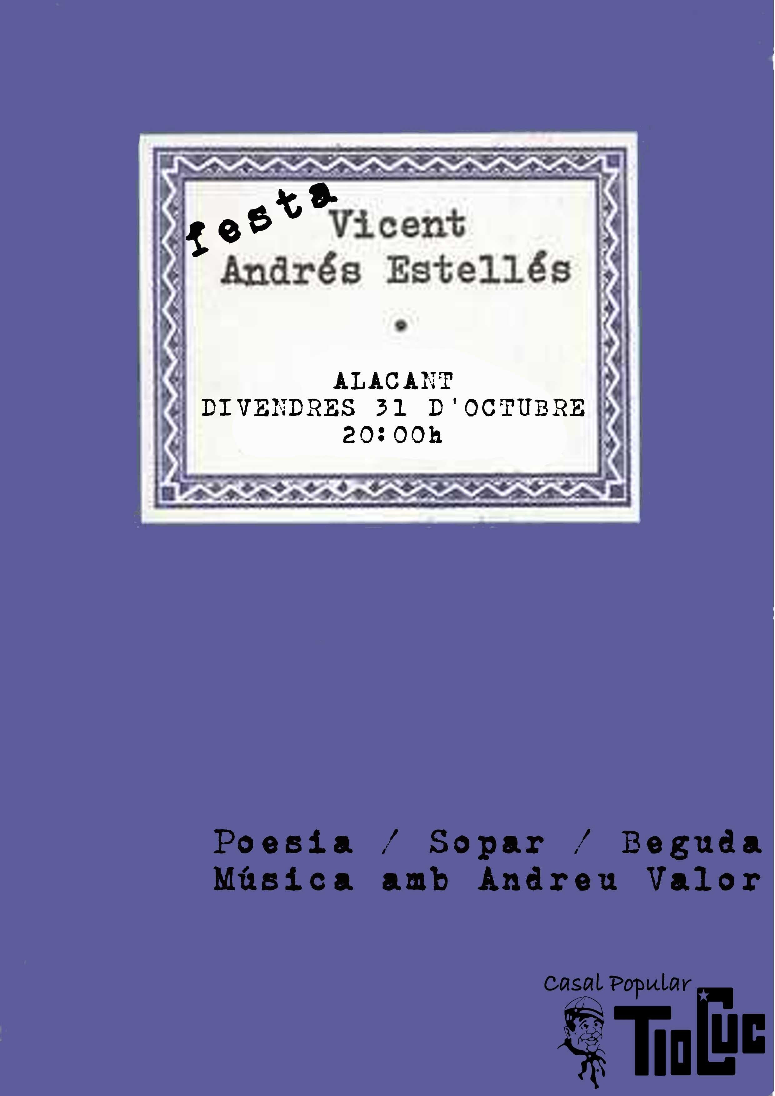 El fet que l’AVL dedicara l’any 2013 a la figura del poeta valencià Vicent Andrés Estellés va ser una bona oportunitat per revisar la seua obra, fer-hi noves aproximacions, recitar-lo, dur-lo a les escoles, construir-lo i deconstruir-lo. Activitats, totes aquestes, que no s’havien deixat de fer des de fora de les institucions, i que l’any passat, en fer 20 anys de la mort del poeta, potser, s’ordenaren. La celebració, doncs, afavorí l’excusa per repensar-lo a tots aquells que el tenim present gairebé dia a dia, i l’oportunitat d’expiar les culpes als qui, per motius en què ara no hi entrarem, encara no s’hi havien posat amb el poeta de Burjassot. En el primer grup és on hem d’encabir les Fetes Estellés que ja coneixereu.