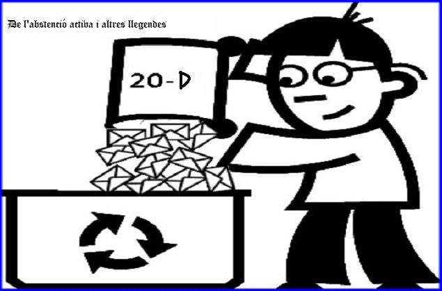 Però no és aquest el problema a plantejar. Perquè no he tingut l’oportunitat de trobar cap propaganda d’aquestes formacions anònimes. Però sí que he observat un moviment considerable que demana l’abstenció activa: exercir el dret a no votar com una eina per canviar les coses. O com una manera de no reconèixer la legitimitat d’un estat, d’un sistema o de molts factors al mateix temps. I si bé he de reconèixer que jo també he valorat aquesta opció, després d’una reflexió no molt profunda i d’escoltar dos o tres filòsofs que votaran els guanyadors, he de dir que l’he descartada.