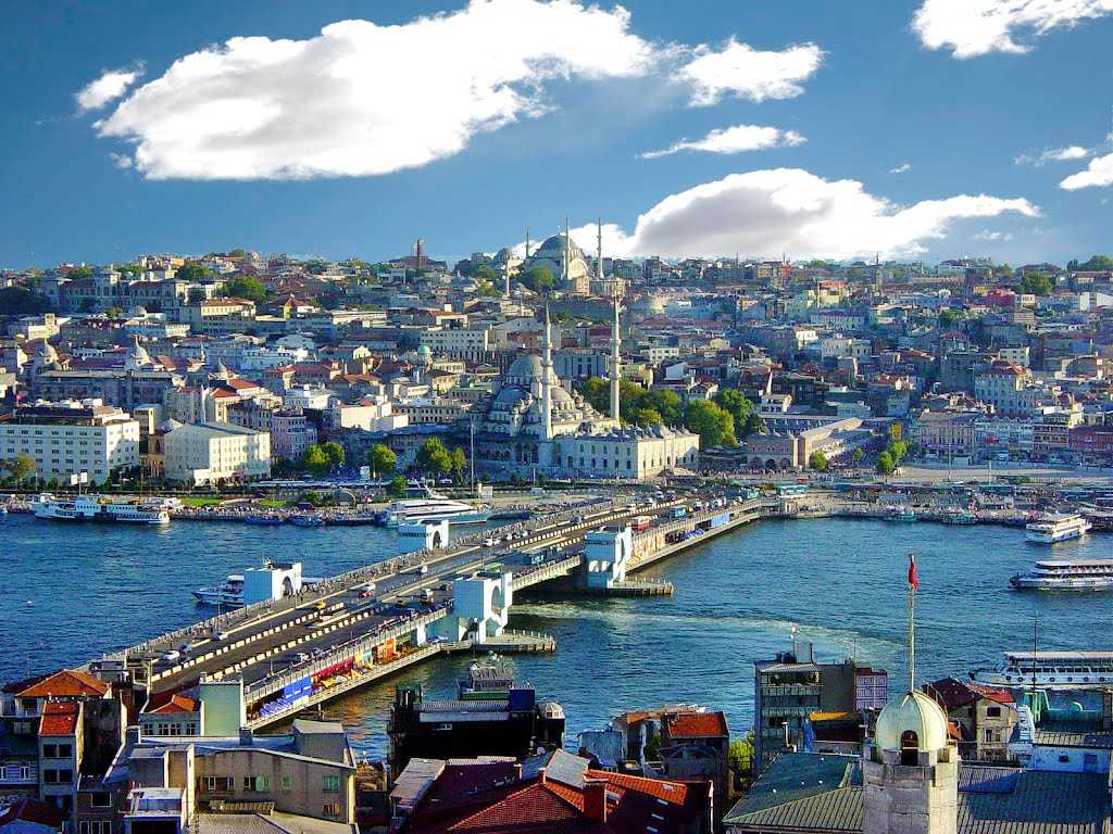 Situada a les dues ribes de l’estret del Bòsfor, a la confluència entre Europa i Àsia, és el principal port del país i inclou el port natural conegut com el Corn d’Or, travessat pel famós pont de Gàlata. La seva població actual supera els 13 milions, i això la fa una de les ciutats més grans d’Europa. Les zones històriques d’Istanbul van ser declarades Patrimoni de la Humanitat per la UNESCO l’any 1985, pels seus importants monuments i restes històriques.