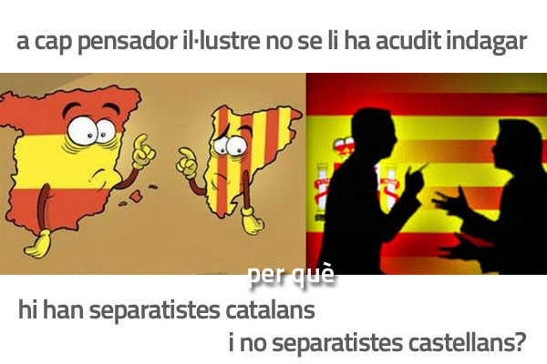 En aquest projecte apareixerà una pregunta clau: a cap pensador il·lustre no se li ha acudit indagar per què hi han separatistes catalans i no separatistes castellans?