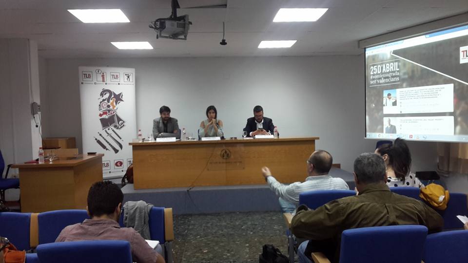 Amadeu Mezquida va dir que Baydal havia fet una mirada al passat i ell faria una mirada sobre el present i el futur. Va dir que a la II República el valencianisme va tindre molt de ‘protagonisme’ com explica a “El valencianisme enfront Espanya”, afirma que fou un moment ‘molt dolç’ per al valencianisme resorgit, (tot i que la II República ‘espanyola’ no va reconèixer la igualtat del català i les altres llengües davant el castellà o espanyol, ni va reconèixer el dret a l’autodeterminació ni la federació o confederació dels Països Catalans). Va dir que hi havia molt de circumstancial en l’emergència del valencianisme actual, Compromís estava en el moment adequat i en el lloc oportú davant la necessitat d’una regeneració democràtica de l’statu quo a l’estat espanyol, Compromís ha sabut prendre-li el pols al poble valencià, però els nacionalismes o triomfen o moren… Hi ha nacionalismes, va assegurar Mezquida, en decadència com O Bloque Nacionalista Galego o La Chunta Aragonesista, en camí d’esdevenir ‘residuals’ i, en canvi, el nacionalisme a Catalunya i Escòcia van camí de triomfar enfrontant-se a una identitat hegemònica espanyola; es va preguntar fins a quin punt la identitat hegemònica espanyola està present a la nostra societat valenciana, Mezquida va donar per bones les enquestes sociològiques sobre el País Valencià i diu que es mantenen estables des del 1996 fins al 2012 amb un 10 -12% que es declaren més valencians que espanyols, tot i que tots sabem com es cuinen les enquestes des del CIS i el CSIC en funció dels interessos de l’estat, amb uns mitjans de comunicació aclaparadorament espanyolistes i anticatalanistes i potser als darrers anys les dades han canviat, tot i que continuem en condicions molt precàries i sense mitjans que ens cohesionen en català als mèdia, com denuncia Josep Gifreu a “L’espai de comunicació en català a l’era digital”. Mezquida afirma que ha variat poc aquest percentatge i explicà que les eines clàssiques per reformar i ampliar el context de pertinença a la pròpia nació no són molt eficaços, han fracassat perquè no han sigut útils, per tant, conclou, cal fer-ho amb noves eines, des de la construcció d’una identitat ‘líquida’ (Bauman); un model de marc cognitiu basat en fets i interpretacions per saber quins conceptes són útils i es apropen o ens allunyen de “l’objectiu”; davant el fenomen de la globalització, afirma Mezquida que la concepció ‘ètnica’ que es té de la nació trontolla davant la globalització, cap amunt, la UE i cap avall, a les autonomies, (tot i que el que trontolla potser és la concepció tradicional de l’estat) i davant la globalització les llengües i cultures encara sense estat són forçades a tenir-ne per a defensar-se davant estats hostils i organismes internacionals al servei d’una globalització que prescindeix de les cultures minorades i les tracta d’extingir, per tant, cal agrupar-se en estructures d’estat pròpies al més cohesionades possible, en defensa de la llengua i la cultura dels Països Catalans, hauríem de concloure. El senyor Mezquida, davant l’exemple de Grècia qüestiona la ‘sobirania’ perquè afirma que s’ha demostrat que nacions independents com Grècia, davant els reptes econòmics, no poden exercir la seua sobirania i són intervingudes… (No obstant això, el senyor Mesquida hauria de reconèixer que si això els passa als estats més encara els passa a les entitats autonòmiques dependents d’estats hostils, que ens asfixien culturalment, ens espolien econòmicament, posem per cas, el País Valencià o els Països Catalans i davant el fenomen de la globalització o ens apleguem els catalanoparlants o es posarà en risc la llengua pròpia del País Valencià perquè siga exterminada acceleradament). I tanmateix, el senyor Mezquida, explicava que el 35% dels ‘valencians’ han nascuts fora del PV i a les comarques d’Alacant arriben al 45%, és a dir el nombre de gent que té l’origen identitari fora del territori del PV és molt alt, que mostra la ‘feblesa’ de la identitat individual (Richard Sennett, a “La corrosió del caràcter”); la identitat individual està plena d’incerteses, la identitat és flexible, l’individu construeix la seua identitat líquida davant les incerteses però això passa també en el plànol de la identitat col·lectiva. Per aquesta construcció feble i líquida de la identitat social i individual, Mezquida proposa que cal ‘deixar en un segon plànol’ els elements culturals (tot i que supose accelerar el nostre propi extermini específic com a valencianitat o catalanitat?) i afirma Mezquida que cal buscar elements més cívics, parlant de la construcció del futur (com si no es poguera construir un relat cívic des de la nostra llengua i cultura catalana, des de discursos del dret a la igualtat i a la dignitat de la nostra llengua i cultura pròpia). Va sintetitzar que el valencianisme ha de fer seues ‘les causes del poble’ i les pròpies del poble. La gent vota amb allò que més s’identifica, aconseguir la identificació del poble amb el valencianisme, esforçar-nos que es conega el 25 d’abril, fer una Diada inclusiva, redefinir-lo perquè hi haja una cohesió social, “més que ‘diferenciar-se’ de l’estat, cohesionar el poble”. Cal construir un relat de futur davant les incerteses del món, un relat propositiu, inclusiu i cohesionador. Es va preguntar quins valors volem per al País Valencià? Pluralitat, respecte, convivència (la igualtat de drets, la dignitat, el dret a decidir, la justícia social, la redistribució justa del recursos, la conservació d’ecosistemes vitals…). La visibilitat ‘valenciana’ no com a ‘confrontació’ sinó com a pluralitat; l’apoderament ciutadà, mitjançant consultes, referèndums per afavorir els interessos específicament valencians. Va dir que calia redefinir cer