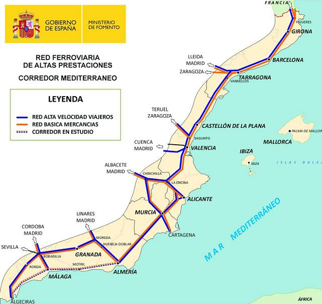 L’octubre del 2011, la UE aprova la construcció de la línia ferroviària a través de l’eix mediterrani. El projecte no estarà acabat abans de l’any 2030 i suposa una inversió de més de 50.000 milions d’Euros, dels quals, la UE n’aportarà entre un 10 i un 20%.