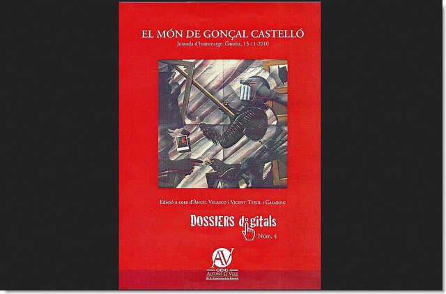 Al final d’aquest llibre titulat “Gonçal Castelló”, Àngel Velasco detalla les pròpies obres de Gonçal Castelló i un excel·lent suport bibliogràfic, informàtic i digital, de revistes i de catàlegs, inclús obres i catàlegs col·lectius on apareix algun escrit de Castelló; així com llibres on hi ha referències sobre el seu context històric, la seua vida i l’obra, posem per cas, el d’Enric Sòria i Parra, “30 anys de cultura literària a la Safor: 1959-1990”, València, Colomar, 1990, el de Josep Guia a “L’aparició i consolidació de l’independentisme català” dins de “De l’esperança al desencís. La transició als PP.CC.”, 2006, el d’Arnau González i Vilalta “La nació imaginada. Els fonaments dels PP.CC.”, Afers, 2006, el de Santi Vallés, “Acció Valenciana (1930-1931). La consciència desvetllada”, 2008, “El pensament valencianista (1868-1939)” d’Alfons Cucó i Ricard Blasco i els llibres i escrits de Miquel Lòpez i Crespí, Faust Ripoll i Francesc Pérez Moragón que ja hem esmentat abans. I d’altres referències molt interessants per entendre el nacionalisme valencià o català actual i les seues arrels en el passat. Perquè qui no es capaç de relacionar i lligar el present amb el passat no sap ni on es troba. Un llibret que cal llegir per situar, -de manera contundent, clara, essencial i convenient-, el mapa i els interessos del País Valencià en el nostre propi context cultural, econòmic, social i nacional. Perquè a l’hora de decidir, decidim per nosaltres i no ens imposen des de fora dient-nos que no tenim dret ni a expressar-nos en la nostra llengua ni a decidir el nostre futur, perquè no tenim dret a tenir drets.