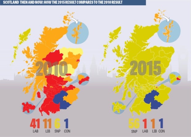 L’altra gran notícia, però no tan inesperada, ha sigut l’aclaparadora victòria dels nacionalistes escocesos amb 56 escons de 59 possibles. Hem de tenir en compte que a les últimes eleccions generals de 2010 van obtenir només 6 parlamentaris i el dijous passat van arrasar, augmentant en 50 escons, en uns resultats sense precedents.
