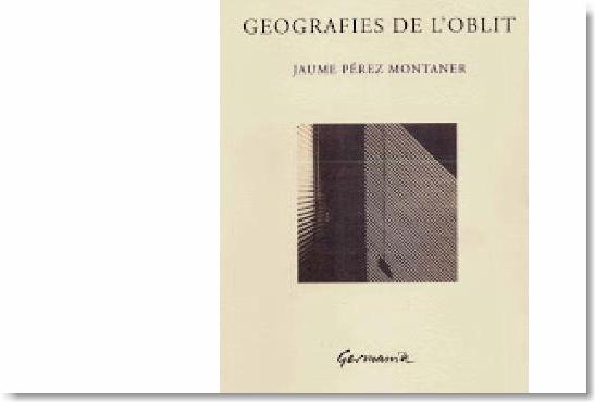 Geografies de l’oblit és un llibre dividit en tres parts: «Açò. Els torniols del record», «Això. Les paraules del mar» i «Dotze apunts per a un autoretrat». Casualitat o causalitat, el llibre conté algunes il·lustracions d’Elsa Pérez Robles, la filla de Pérez Montaner, com la portada d’altre gran de nostres lletres «isolat» en la seua cabana de Sa figuera Verda a la seua illa menorquina, Ponç Pons, en el seu El rastre blau de les formigues. On ja s’hi esmentava en la seua ressenya publicada l’1 d’agost en aquest mateix blog i en La Veu del País Valencià, la portada del seu llibre també està il·lustrada pel seu fill, Llorenç Pons Moll. Com Pérez Montaner citava a Harold Bloom en la seua introducció de l’assaig de Dominic Keown Sobre la poesia catalana contemporània: «un poema remet necessàriament a un altre poema, de la mateixa manera que un fill remet necessàriament al seu pare». Hi ha, però, moltes més coincidències entre ells dos: per resumir-ho breument; la seua saviesa i clarividència, la seua humilitat i grandesa, i el seu ferm compromís i amor per les lletres i nostra terra, llengua i cultura: «I mosseguem com un tros de llimona / aquesta terra amarga com la fel.»