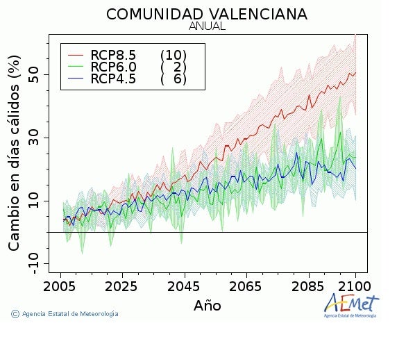 A València, per exemple, les dades de l’Observatori Meteorològic de Llevant (el més antic del PV) indiquen que les temperatures han pujat encara més: 1’5 ºC durant el segle XX i ara estem batent records de calor any rere any; enguany el 14 de maig arribàrem als 43ºC en Xàtiva i el mes de juny de l’any passat fou el més calorós des de 1880, quan començàrem a mesurar les temperatures. Si no canviem prompte, durant el present segle les temperatures mitjanes poden augmentar globalment entre 2 i 7 ºC més; què farem si en estiu arribem als 48 o 50ºC? Ens tancarem a les cases? I els cultius? Podrem seguir vivint ací o les nostres terres es convertiran en un altre Sàhara?
