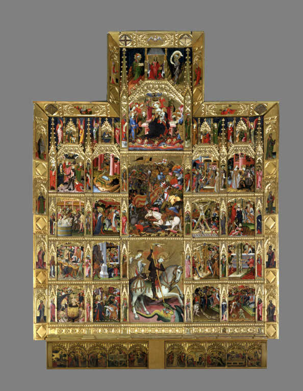 Aquest retaule va ser custodiat en l’antiga església valenciana de Sant Jordi, capella que es trobava en el bell mig de l Cap i casal, però que va ser enderrocada i condemnada a l’oblit en algun moment posterior a l’any 1707. En l’actualitat l’original aquest retaule, una de les joies de l’art valencià, es troba en el Victoria & Albert Museum de Londres presidint una de les seues sales més importants.