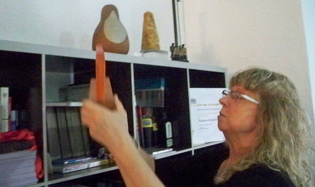 En una de les seues performances creatives, Maribel para de teixir el temps, contar històries, vestir-se de paraules. També es vist d’accions.
