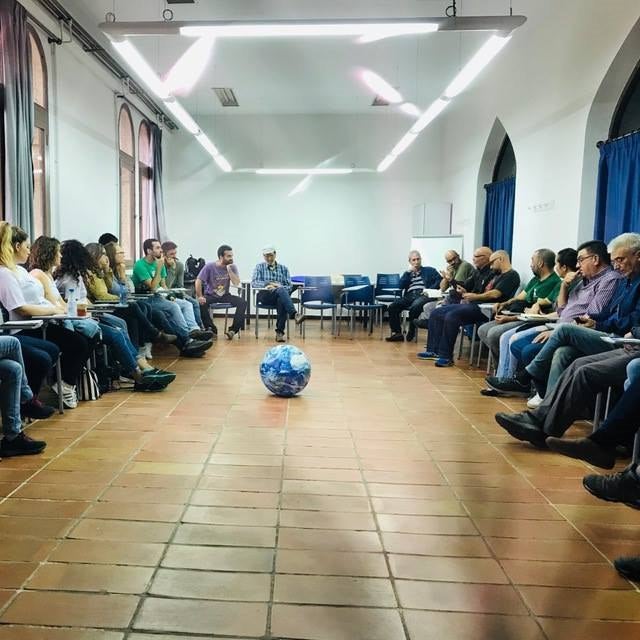I per a tancar l’acte, al final es va fer un photocall on els qui volgueren es feren una foto abraçant la Terra…