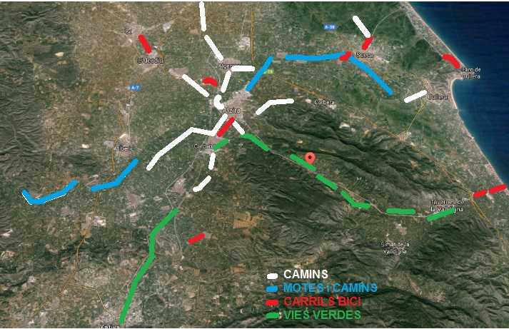 Dins la Xarxa s’haurien d’inserir les dues Vies Verdes que demanem des de fa anys: la de la Pobla-Manuel-Xàtiva (11 km de via fèrria recentment abandonada) i la de Carcaixent-Alzira-la Barraca-Benifairó-Tavernes (20 km de via estreta 50 anys abandonada), que unirien la Ribera amb les comarques veïnes. Aquesta segona caldria veure com completar-la perquè únicament està previst fer-ne el tram entre la Barraca i el Portijol (4’7 km), quelcom absolutament insuficient i ineficaç (per això continua la recollida de signatures).
