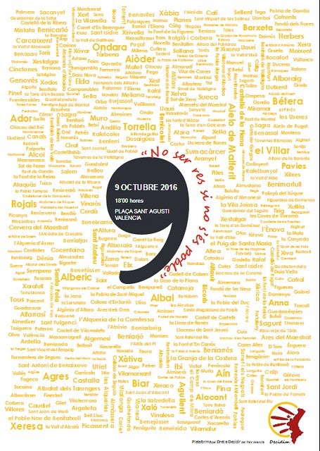 Necessitem anar CAP A LA SOBIRANIA DEL PAÍS VALENCIÀ perquè tenim Dret a Decidir sobre nosaltres i sobre el nostre País. Avançar cap a la sobirania ens obliga a dotar-nos d’un full de ruta que ha de ser compartit i assumit per la immensa majoria de la societat.