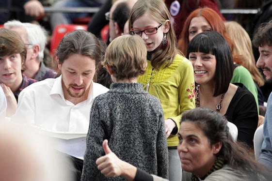 -Fa uns anys es va fer molt famosa “la niña de Rajoy”, recordeu? Doncs bé, “la niña de Pablo Iglesias” va aparèixer en el seu discurs. Però aquesta vegada la xiqueta no era virtual con la de Rajoy, sinó ben real, de qui Iglesias va llegir aparentment “emocionat” un missatge que li hauria lliurat a l’entrada al pavelló, i en el qual li mostrava tota la seua esperança en el canvi que ha de protagonitzar Podemos. La xiqueta va eixir a l’escenari junt a Pablo iglesias a la fi de l’acte.