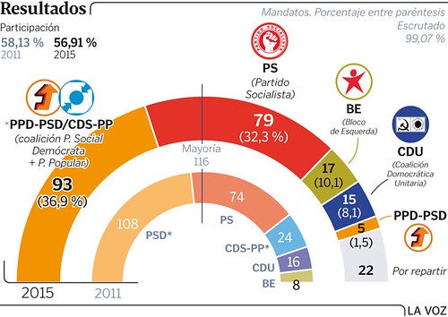 El 30 d’octubre Passos Coelho prestava jurament i formava el govern més breu de la democràcia portuguesa. Deu dies després, el PS (Partit Socialista) va presentar una moció de censura i va posar fi al govern conservador del PaF.