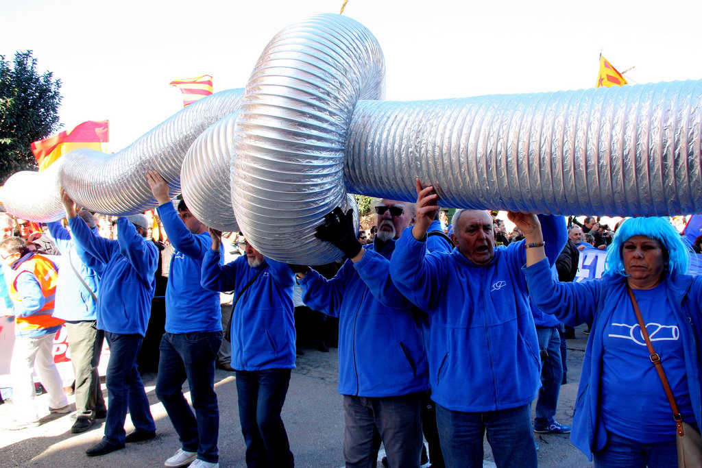 Allà aparcàrem prop del riu Ebre, a la vora del Pont Penjant, on el paisatge és molt semblant, amb arrossars i barraques i tot, al de l’Albufera de València, creuàrem el pont i esmorzàrem al bar “La Pepa”, on ens digueren que si agafen més aigua de l’Ebre i no arriba prou cabal, l’aigua de la mar entrarà més quilòmetres cap a dins ‘lo riu Ebre’ i seria la seua sentència de mort; la gent d’Amposta agraïa, amigablement, que haguérem vingut des de València a solidaritzar-nos contra un Pla Hidrològic decretat per un govern “en funcions” en temps de descompte, en prórroga i en procés de liquidació, com una manera de tractar d’enfrontar i dividir Catalunya entre les Terres de l’Ebre de Tarragona i les Terres Altes de Lleida, mitjançant la mercantilització de l’aigua i la realització d’infraestructures per a beneficiar a unes quantes empreses de l’IBEX-35, que es reparteixen els guanys a la Llotja del Bernabeu, com va passar amb el cas Castor, l’empresa madrilenya que va causar centenars de terratrèmols al nord del País Valencià i sud de Catalunya i ha sigut recompensada amb els diners dels països de parla catalana afectats pels terratrèmols, la manca d’inversions i l’espoliació fiscal. A més del País Valencià, gent de la Plataforma pel Dret a Decidir del PV, gent d’Esquerra Republicana del País Valencià, gent de Poble Lliure i de la CUP de València, també havia arribat molta gent de tot Catalunya i de l’Aragó. Tret del PP i C’s, a la manifestació hi havia de tots els partits polítics de Catalunya i alguns del País Valencià convocats per l’Assemblea Nacional Catalana (ANC) que té molt clar que l’exercici del dret a decidir és determinant per construir el nou estat independent, la República de Catalunya. I va demostrar una vegada més la seua capacitat de convocatòria amb més de 50.000 persones manifestant-se contra el Pla Hidrològic que vol destruir el Delta de l’Ebre.